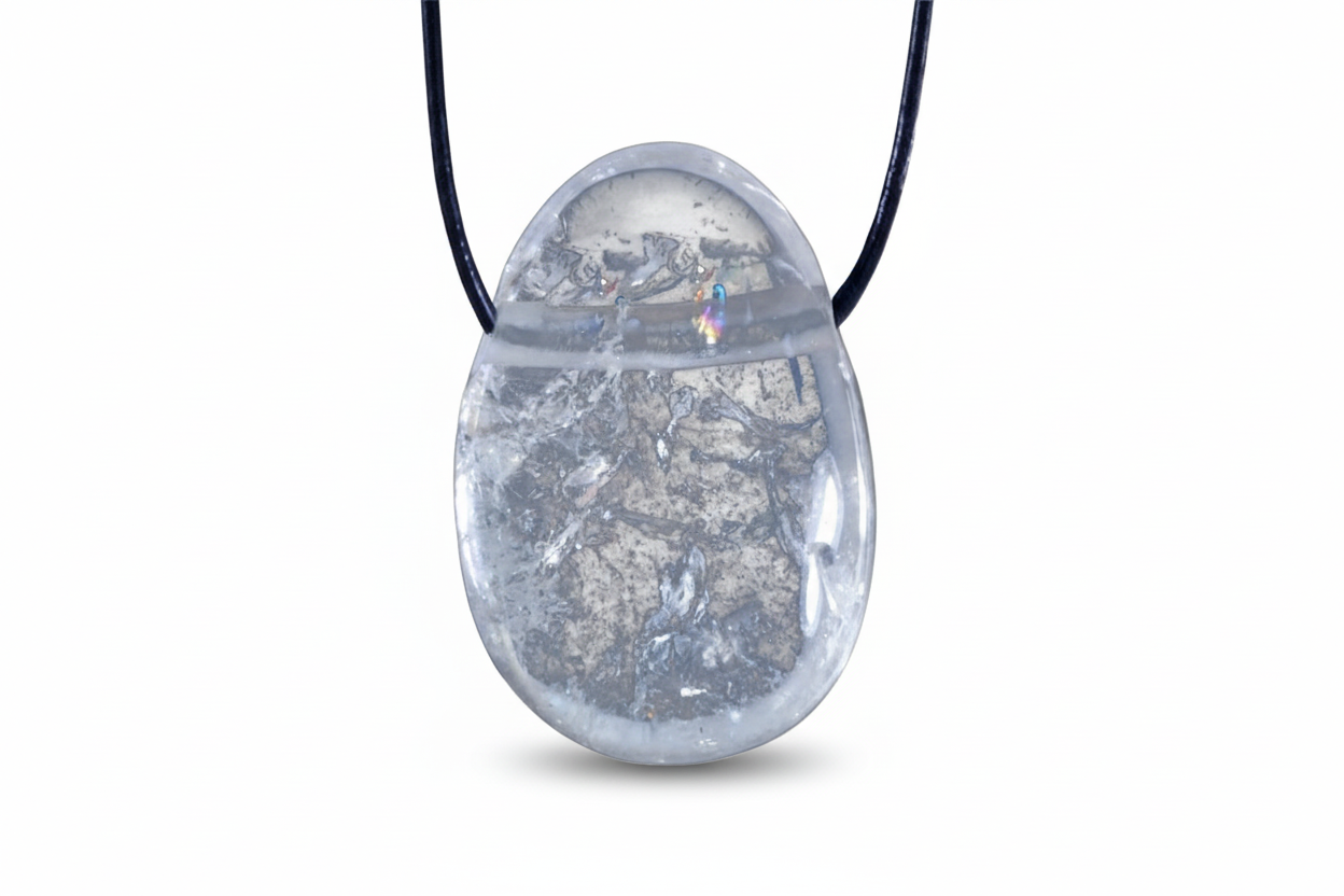 Halskette Bergkristall Tropfenform 3x2cm auf Baumwollband
