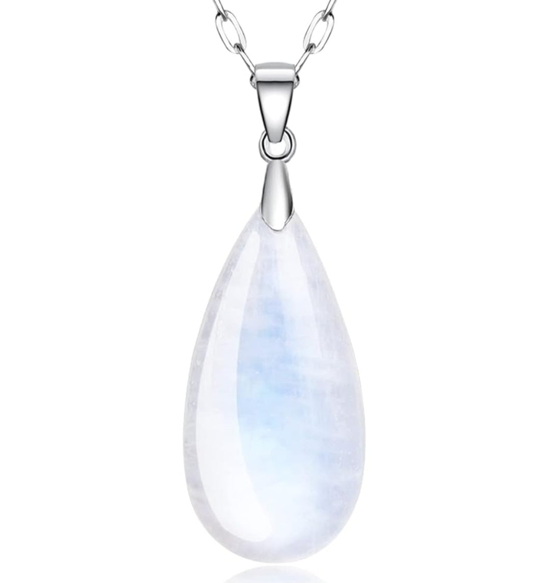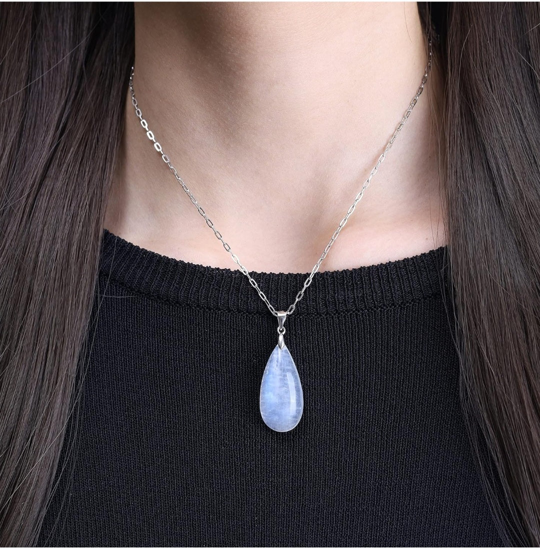 Halskette Mondstein, Echt Silber, Anhänger 35mm, Kette 40+5cm Verlängerung