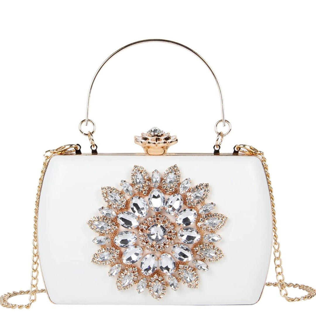 Home / Accessoires / Tasche Abendtasche weiß/gold mit Kristallsteine